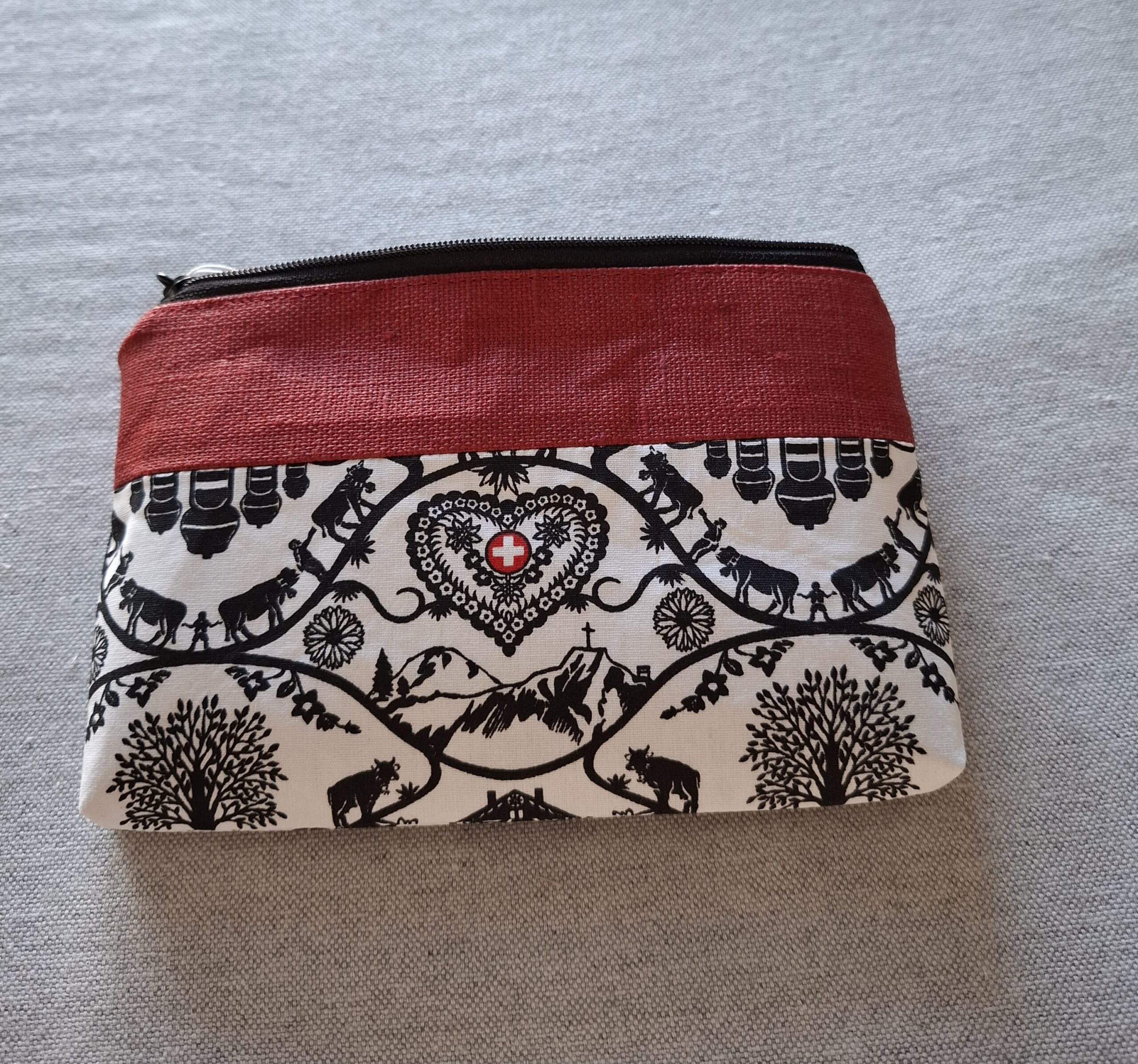 Das «Alpenzauber» Etui vereint traditionelle Folklore-Elemente mit modernem, funktionalem Design. Die Kombination aus beschichteter Baumwolle im liebevollen Alpenstil und robustem, beschichtetem Leinen verleiht dem Etui seinen besonderen Charakter – stilvoll und alltagstauglich zugleich.