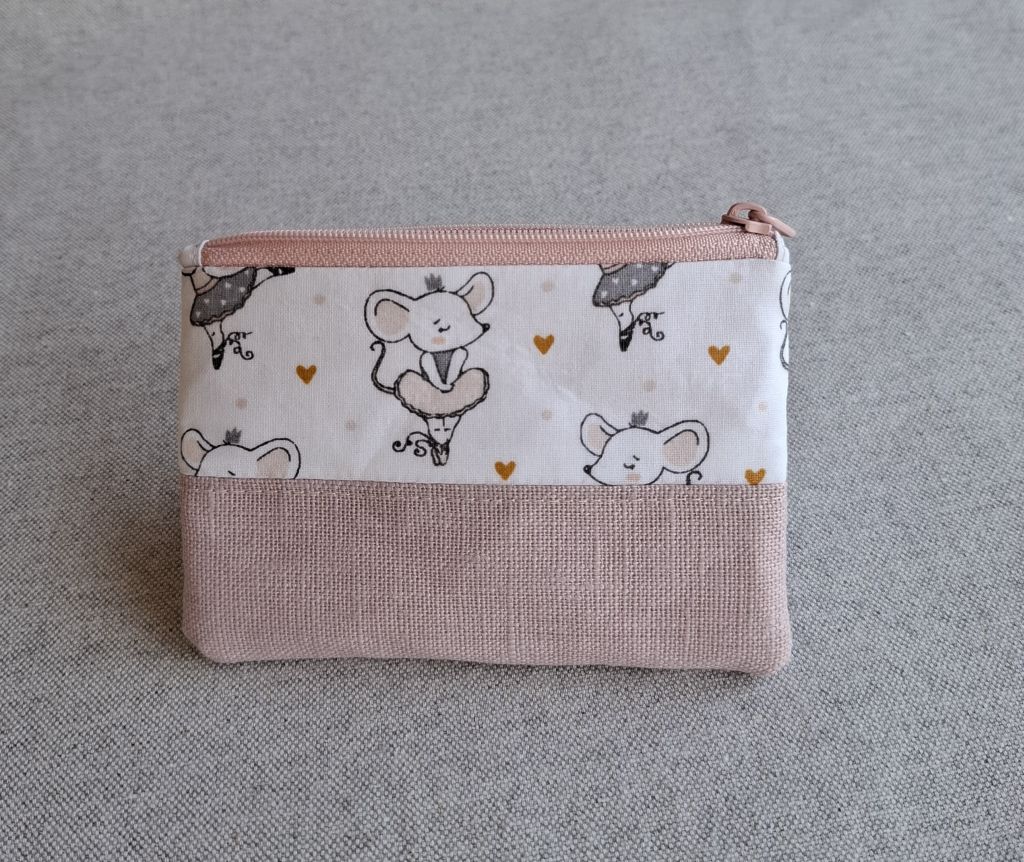 Dieses liebevoll gestaltete Etui verzaubert mit seinem niedlichen Mäusemotiv und kleinen Herzdetails in warmen Natur- und Rosétönen. Der untere Teil aus beschichtetem Leinen in sanftem Rosa verleiht dem Design eine ruhige, harmonische Basis.