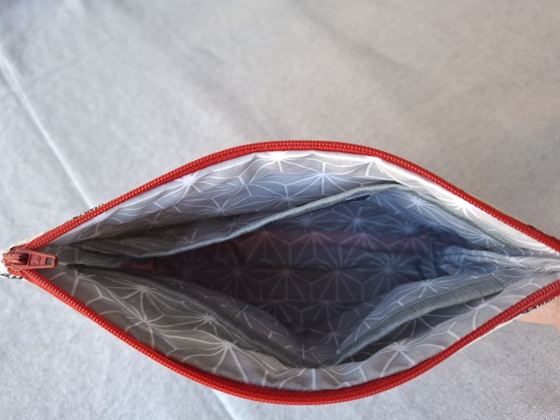 Die beschichtete Baumwolle im Inneren sorgt für eine pflegeleichte Handhabung, während praktische Seitenfächer Ordnung für deine Kosmetik- und Pflegeprodukte schaffen. Der farblich abgestimmte Reissverschluss rundet das Gesamtbild harmonisch ab und hält alles sicher verstaut.